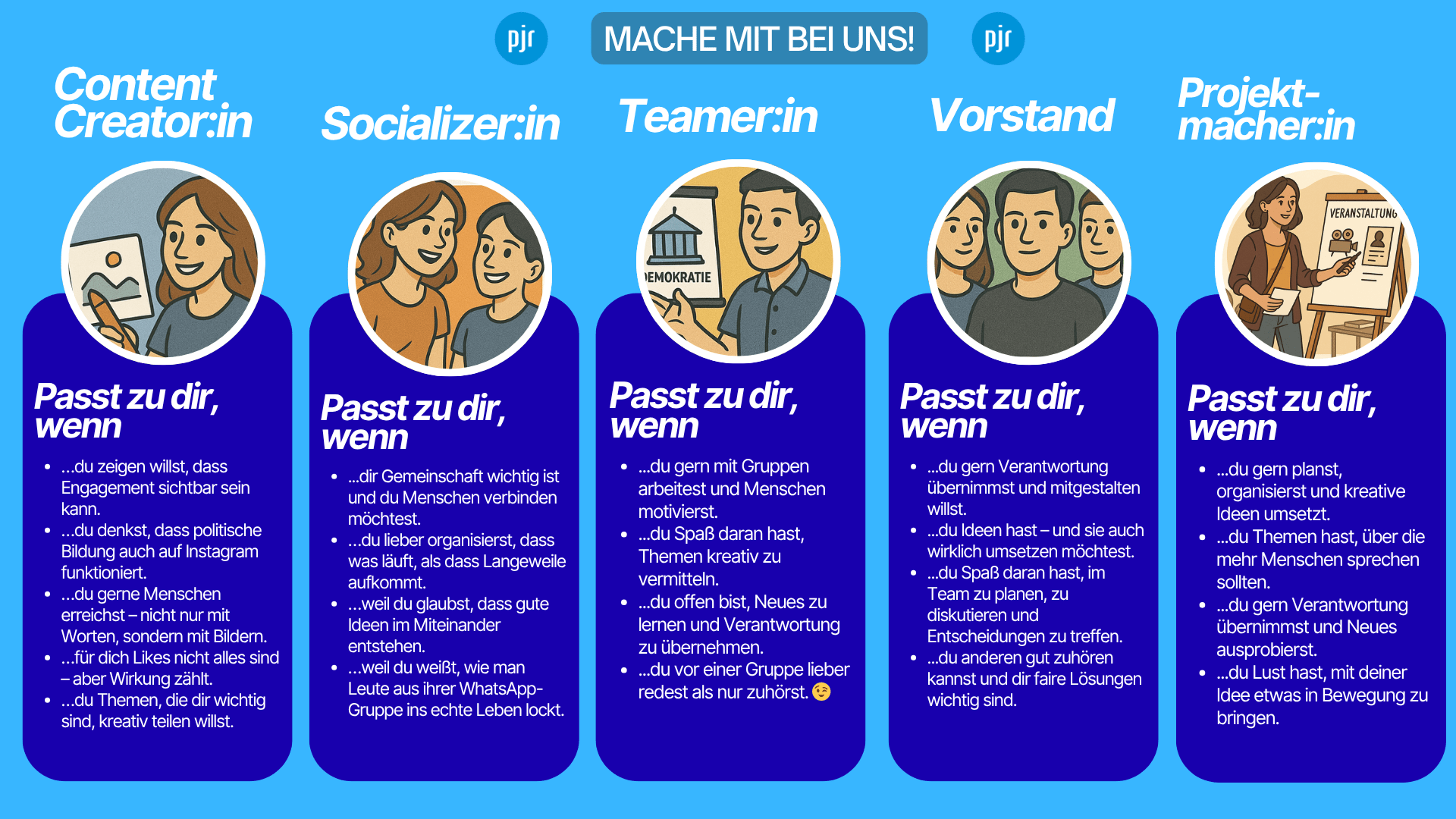 Du willst dich einbringen, neue Erfahrungen sammeln und mit anderen etwas bewegen? Dann bist du beim Politischen Jugendring Dresden genau richtig! Bei uns kannst du...
