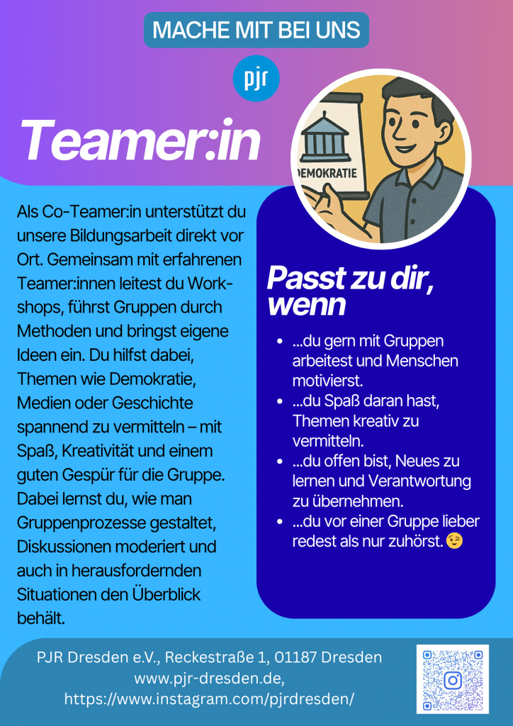 Du willst dich einbringen, neue Erfahrungen sammeln und mit anderen etwas bewegen? Dann bist du beim Politischen Jugendring Dresden genau richtig!