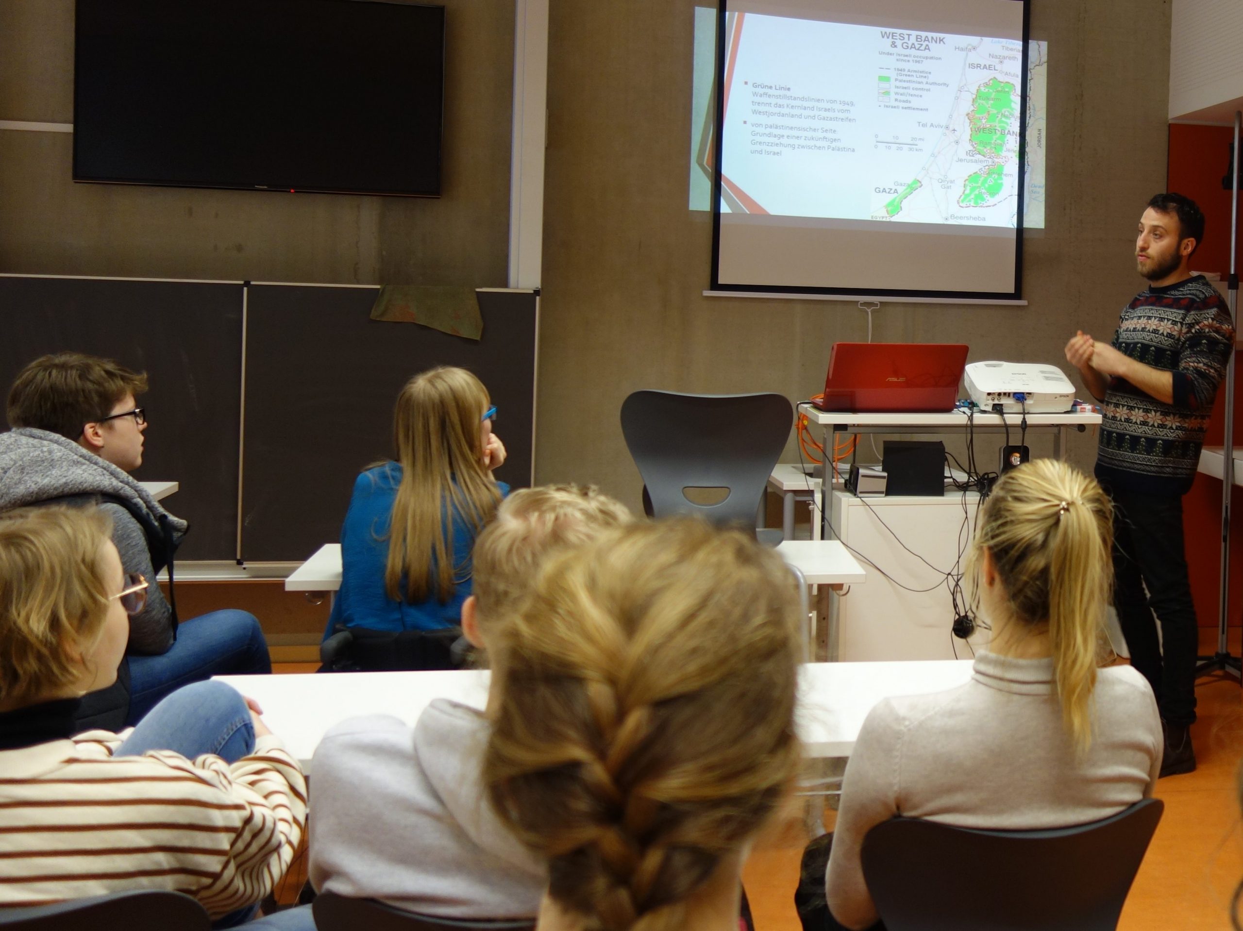 Der Vormittag hat sehr viel Spaß gemacht und wir haben viel gelernt. Spannend war es, den israelisch-palästinensischen Konflikt mal von verschiedenen Seiten her zu betrachten. Spannend war auch, was wir von den Israelis schon darüber erfahren haben und wie deren Haltung zu ist.