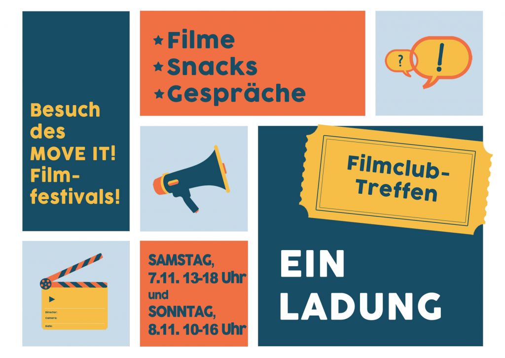 Dieses Mal dreht sich alles um das MOVE IT! Filmfestival! Gemeinsam besuchen wir das Festival am Samstag und am Sonntag. Dort kann man einige Filmclub-Mitglieder sogar in Action erleben, denn am Sonntag wird ein Film von den Filmclubs präsentiert und das anschließende Filmgespräch von ihnen moderiert. Natürlich gibt es auch wieder genügend Zeit zum diskutieren der Filme, lecker Essen und Stoff zum Nachdenken!